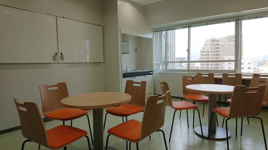 リフレッシュスペースはテーブル、椅子のほか、壁面にはホワイトボードを設置しており、学生の休憩スペースとしての利用のほか、教員や学生が歓談しながらの打合せ・ミーティング等に利用することを想定しています。