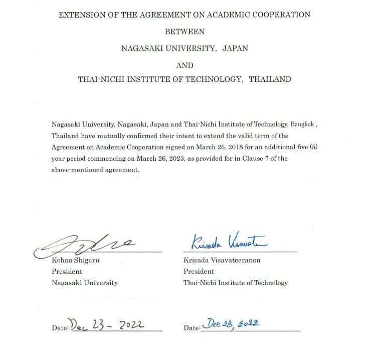 情報データ科学部は、タイ王国 泰日工業大学(Thai-Nichi Institute of Technology)との間で、2018年3月に締結した大学間交流協定及び学生交流に関する覚書を更新する協定書を取り交わしました。